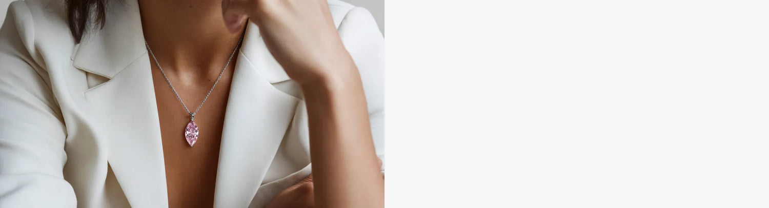 A cascade of light embracing dawn's first blush. This exquisite design features a lab-grown pear-cut pink diamond as its radiant focal point, set upon a three-quarter pavé band where white diamonds trace a sparkling constellation along...